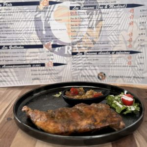 COMMANDER MAINTENANT entrée Pastels Beignets farcis au boeuf ou thon avec une délicieuse sauce… €6.50 entrée Samoussas 4 pièces de beignets farcis au boeuf légumes ou au… €6.90 plats Tiep Rouge Poulet Riz à base de tomate concentrée, accompagné de légumes et… 15,00 € plats Yassa Poulet Sauce à base d'oignons et légumes accompagnée de riz blanc 15,50 € plats Mafé Poulet Sauce arachide et gombo accompagnée de riz blanc 15,00 € Grillades Poulet Braisé 1 cuisse de poulet avec un accompagnement au choix €14.90 Grillades Poisson Braisé Dorade braisée avec un accompagnement au choix €24.90 Accompagnements Allocos Bananes frites 5,00 € Boissons Jus de Gingembre Boisson naturelle et énergisante à base de gingembre 4,90 € Boissons Jus De Bissap Boisson naturelle et rafraîchissante à base de fleur d'hibiscus 4,50 €